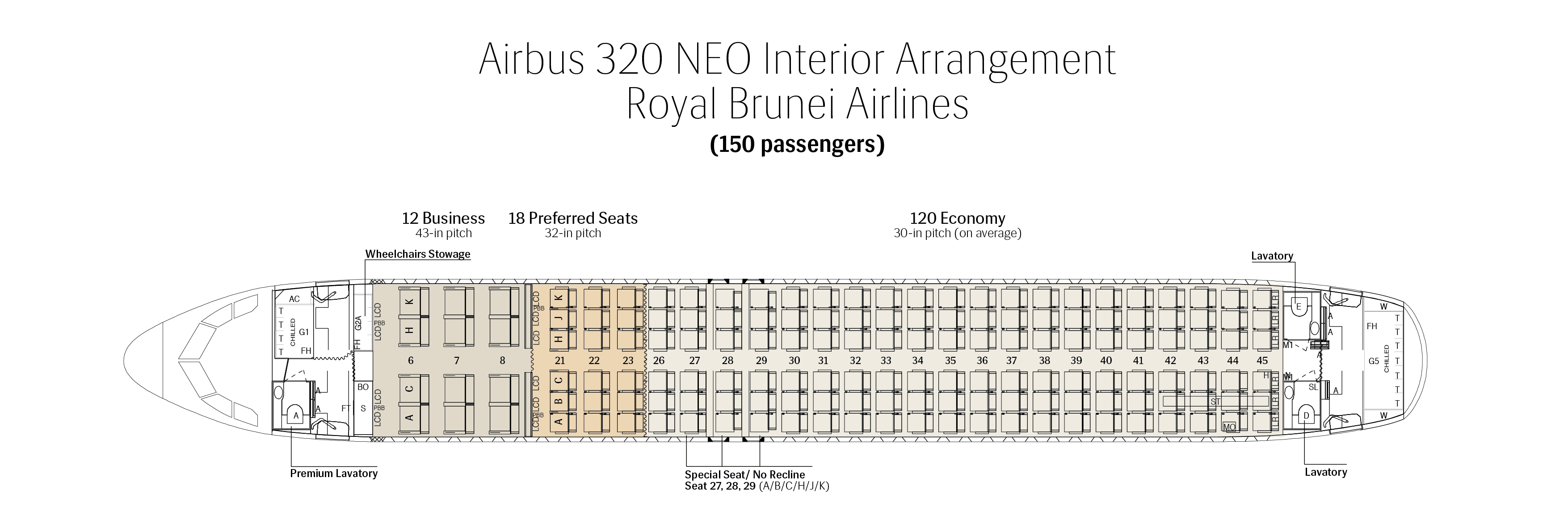 Royal Brunei Airlines operate both wide and narrow body fleets, each with two cabin types – Business Class and Economy Class.