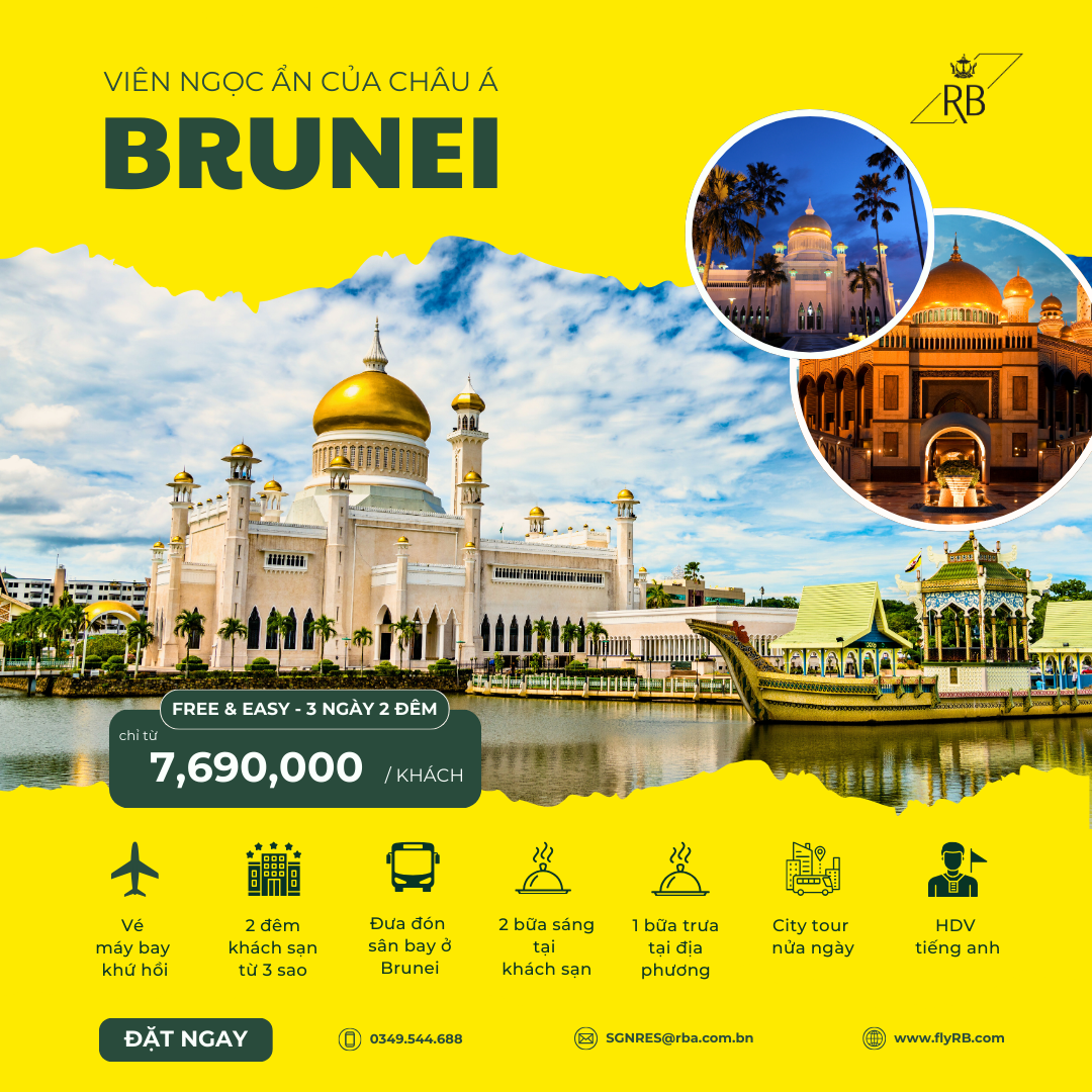 Hãy cùng Royal Brunei Airlines mở ra hành trình khám phá Brunei – đất nước của những cung điện lộng lẫy, những thánh đường tráng lệ và nền văn hóa độc đáo. Với gói tour “Free & Easy” 3 ngày 2 đêm, bạn sẽ được trải nghiệm sự sang trọng và bình yên tại quốc gia giàu có này.