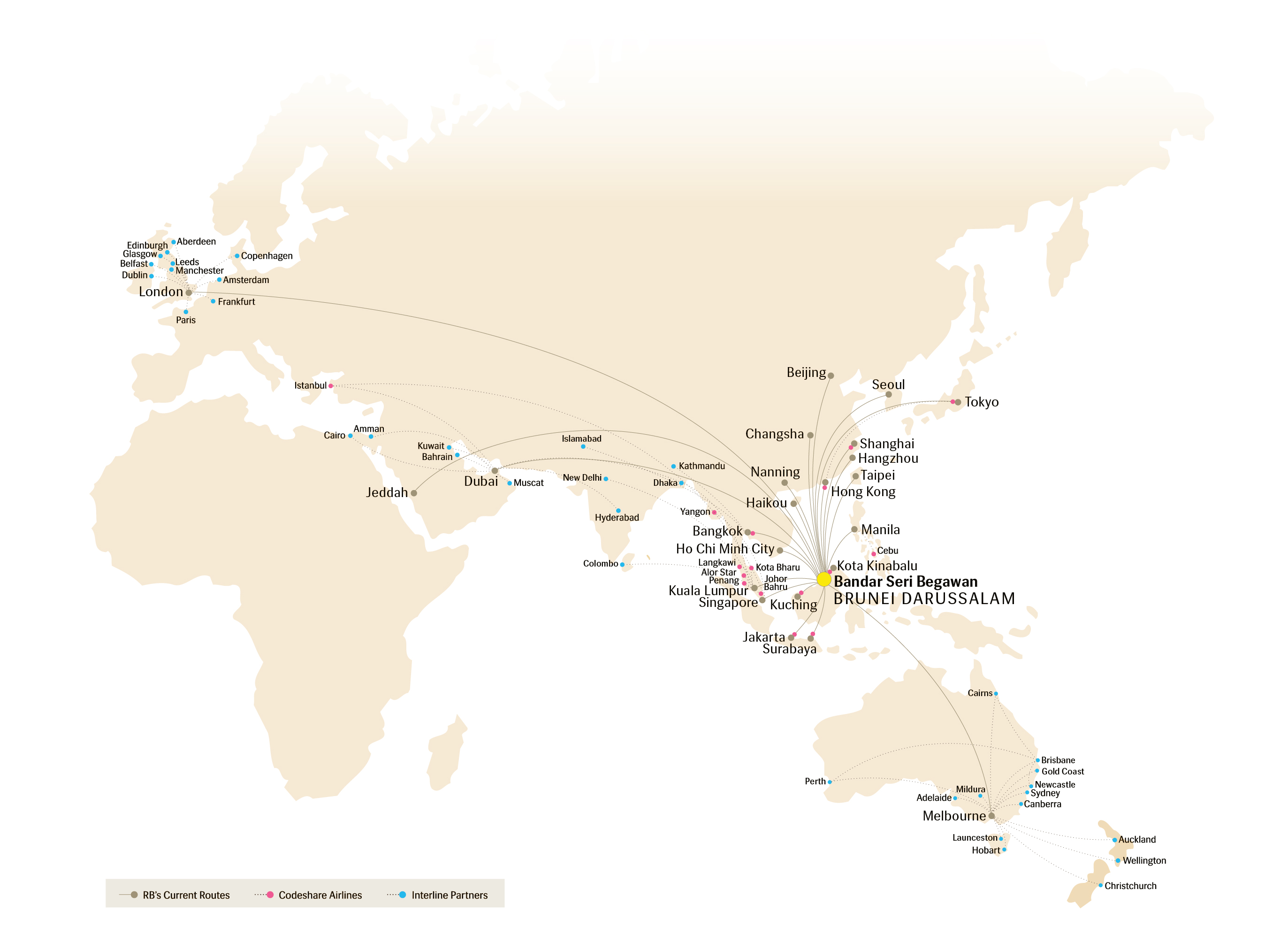 Royal Brunei Airlines provides scheduled services across Asia, the Middle East, Australia, and the United Kingdom. The airline also has code-sharing and interline agreements allowing guests to coordinate flights to seamlessly travel to a wider range of destinations.